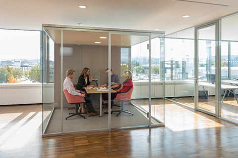 Strähle provides versatile partition wall systems, room-in-room solutions and acoustic concepts for contemporary office layouts. On the basis of these three pillars, we develop room systems which combine functionality, economy and healthy working with a high-quality appearance. At Strähle, we have achieved a standard of quality and flexibility that we call „free-dimensional space“. It means unlimited freedom of design to provide flexible solutions. Our systems are compatible with one another and can therefore be used flexibly. The modular construction provides individual solutions with a high degree of functionality. Glass, wood, aluminium, textiles – each interior can be designed to individual desires thanks to a varied range of wall and acoustic elements.