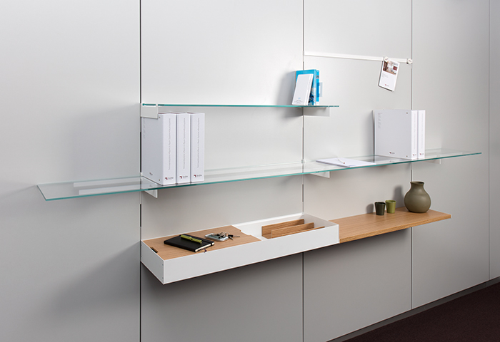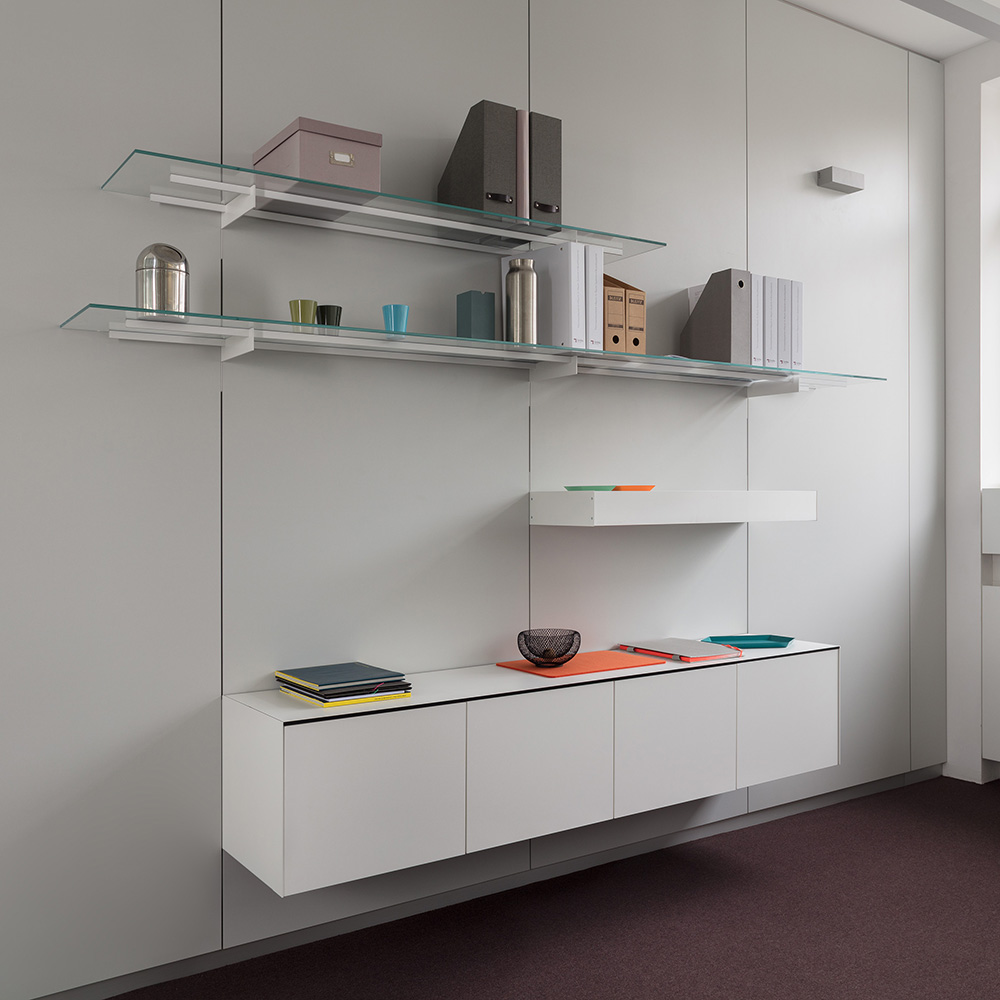 The vertical wall organisation already integrated as standard combine maximum flexibility with a high aesthetic standard and ensure an individual, motivating working environment.