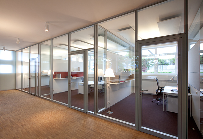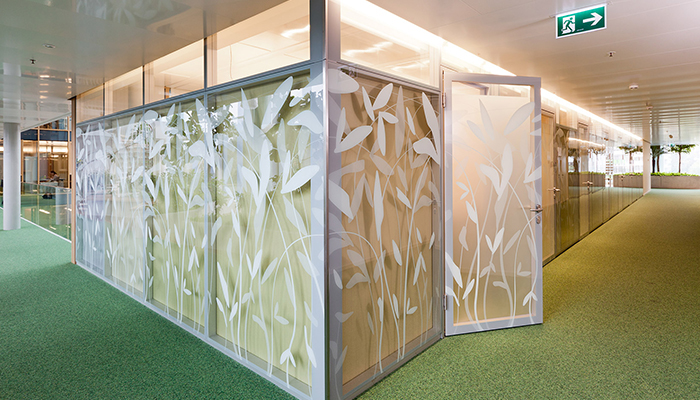 Flush-fit door element on both corridor and office side using Structural Glazing