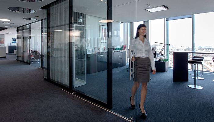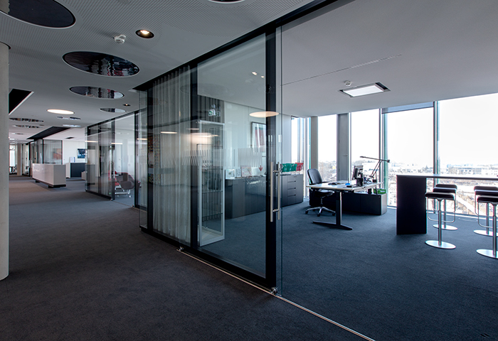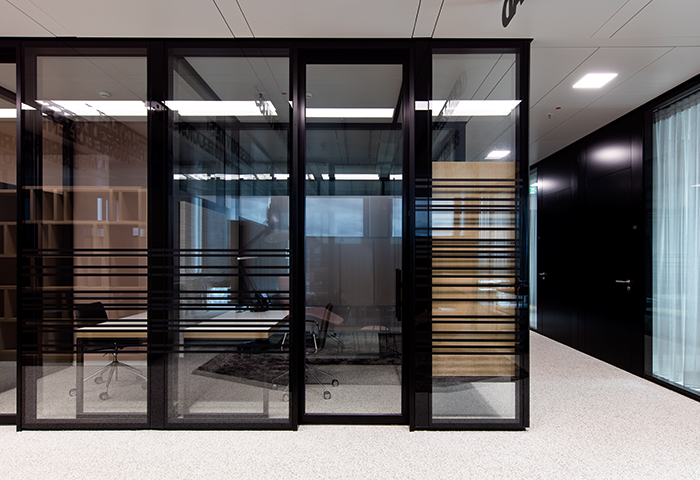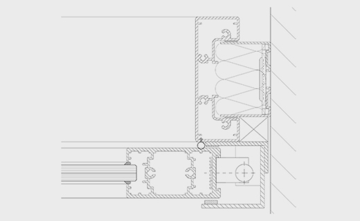 Surface: Continuous frame and door panel made of aluminium profiles, surface available either as anodised E6/EV1 or powder-coated