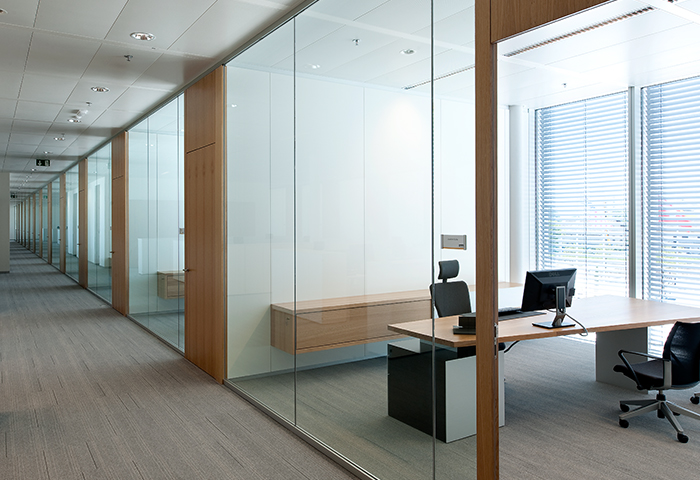 Without vertical posts, this versatile fully glazed system with single glazing combines maximum transparency and a high degree of economy. Its elegance and very short assembly times are particularly impressive. The basis is a variable aluminium floor and ceiling profile, which can support a number of different types of glazing. It is compatible with other Strähle wall systems and suitable for corridors where high transparency is required.