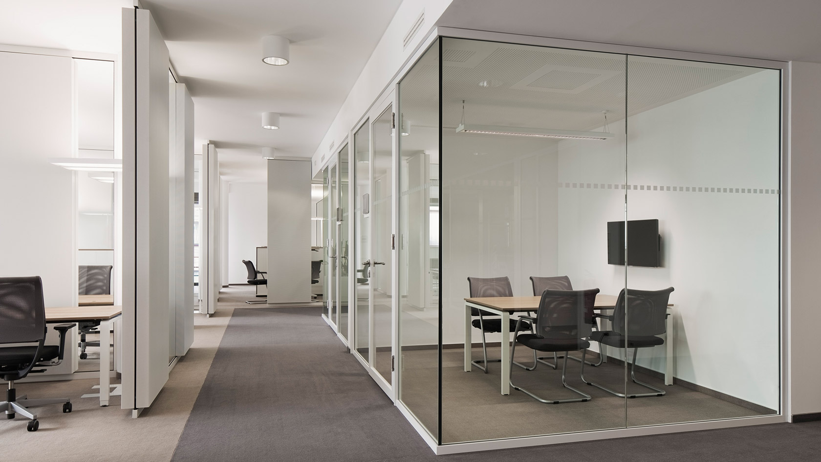 For inspiration you will find more examples of projects with our partition walls, acoustic systems and room-in-room-solutions.