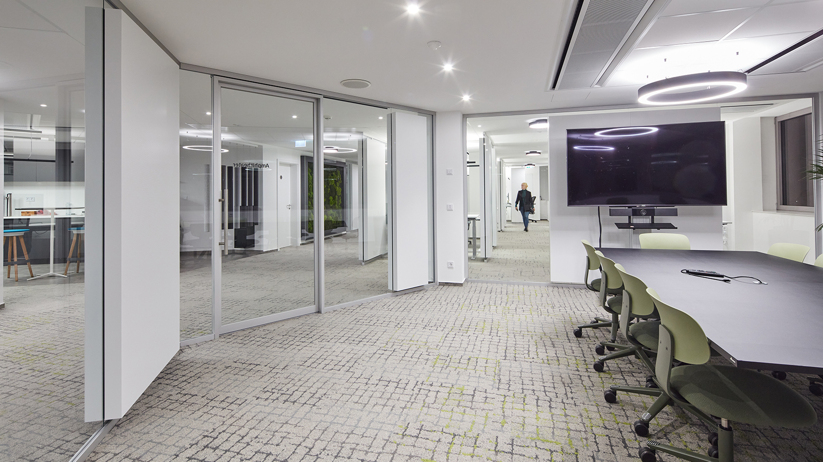 The double-glazed System 2000 partition wall system has been used in zones requiring greater sound insulation in the office area, as well as an additional 225 linear metres of the single-glazed System 3400.
