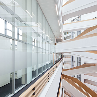 Openness and transparency are the hallmarks of the new headquarters of ThyssenKrupp AG in Essen – inside and out. Consisting of 12 separate buildings, the headquarters were designed and built by a consortium made up of renowned architects Atelier d’Architecture Chaix & Morel et Associés, Paris, and JSWD Architekten + Planer, Cologne, to express the company’s aspirations to “live innovation, promote dialogue, share knowledge”.